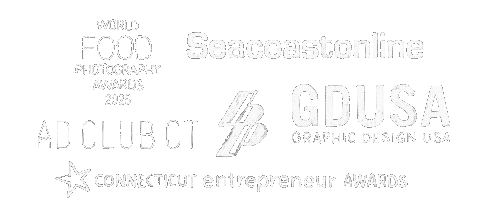 Here’s a look at some of the recognition that’s found its way to our studio. World Food Photography Awards 2025, Finalist World of Drinks, Seacoastonline 10 to Watch 2021, BP Adaptive Sports Generous Spirit Award, GDUSA Awards for branding, packaging, + style guides, CT Entrepreneur Awards – Entrepreneur of the Year Main Street